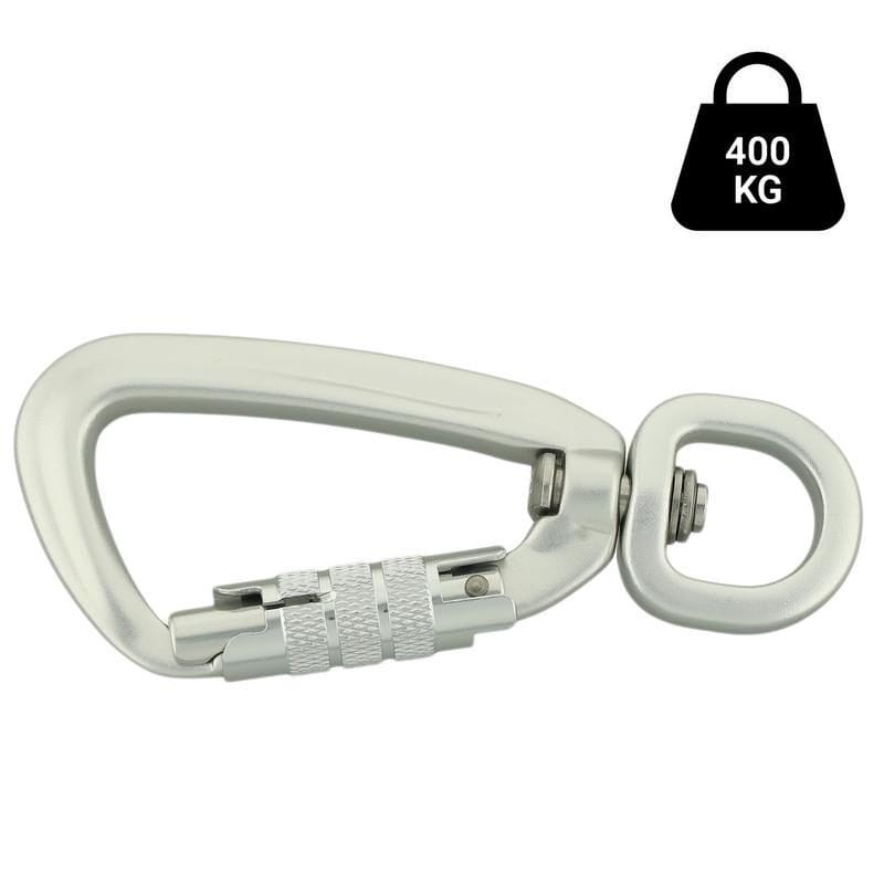 Smycze specjalne od strony psa mają karabińczyk aluminiowy z zabezpieczeniem - taki karabińczyk daje większą gwarancję nie wypinania się podczas tarzania, zabawy w krzakach czy przy szaleństwach z innymi psami. Karabińczyk aluminiowy o wyjątkowej nośności (400 kg) wykonany jest z materiału wykorzystywanego w przemyśle lotniczym. Dzięki temu jest niezwykle odporny na korozję i zużycie, zachowując przy tym zaskakującą lekkość - waży zaledwie 24 g.