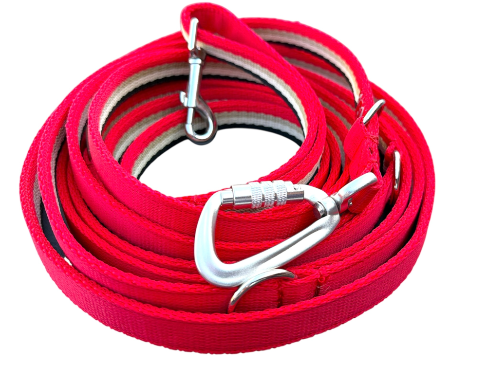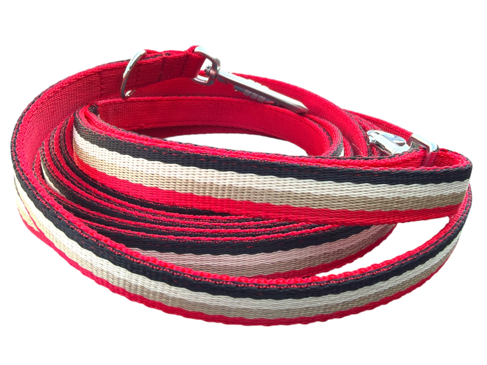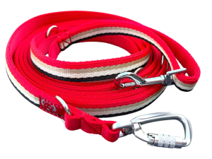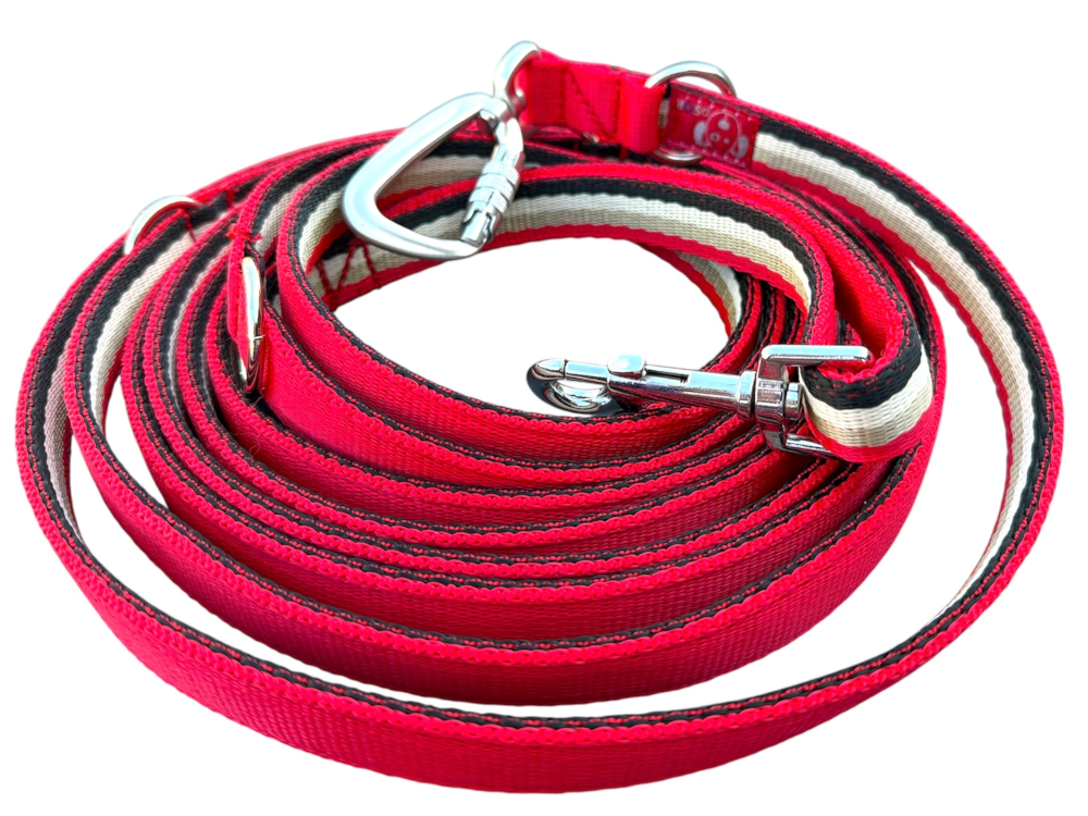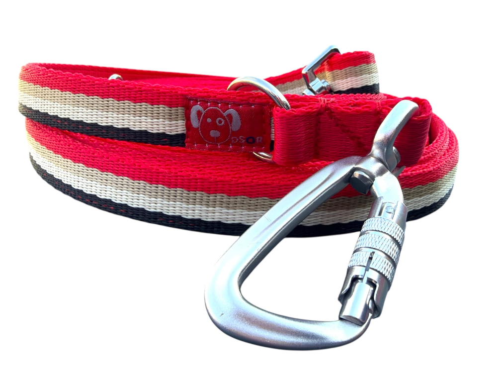 Smycz przepinana podwójna dla psa retro style/czerwony (karabińczyk aluminiowy)